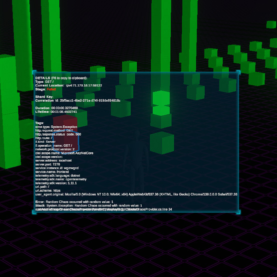 - Real-Time 3D Data Visualization: Metrics, logs, traces, and events are layered dynamically in a 3D environment - no dashboards, no toggles, no lost momentum.